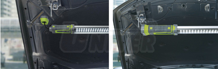 - na každém konci lampy hák s pružnou vytahovací šňůrou a dva silné magnety