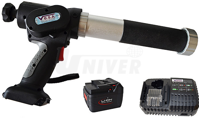 Akumulátorová pistole pro výdej lepidel, těsnicích hmot, tmelů apod. z kartuší 310 ml a sáčků 400 ml.