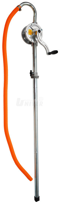 Ruční rotační sudové čerpadlo ze speciální hliníkové slitiny s klikou, výtokovým kolenem a hadicí pro čerpání nafty, petroleje/kerosinu, olejů, ethylalkoholů atd. ze sudů 60 l/ 110 l / 210 l.- nalézá široké uplatnění pro čerpání nafty, petroleje/kerosinu, olejů, ethylalkoholů atd. ze sudů 60 l/ 110 l / 210 l