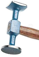 Autokarosářské kladivo má hlavici v kombinaci kulatá plocha s hrubým křížovým sekem (rýhovaná) pro vyklepávání plechu bez jeho vytažení + čtvercová hladká plocha pro běžné vyrovnávání plechu.