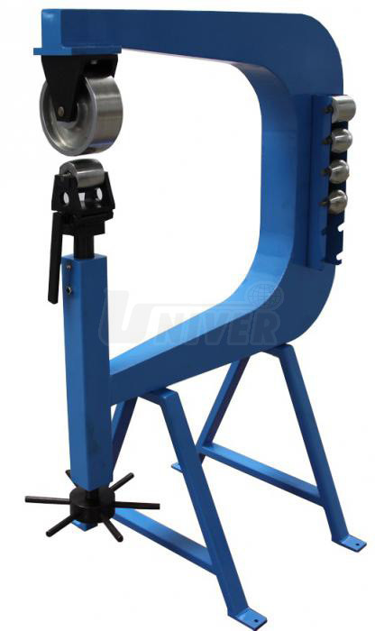 - vrchní válcovací kolo je rovné, spodní má kulatý profil a plech tvaruje, spodní tvarovací rolny lze zvolit v různém tvaru a kvalitě, nastavení těchto rolen se provádí pomocí nožního klikového mechanismu