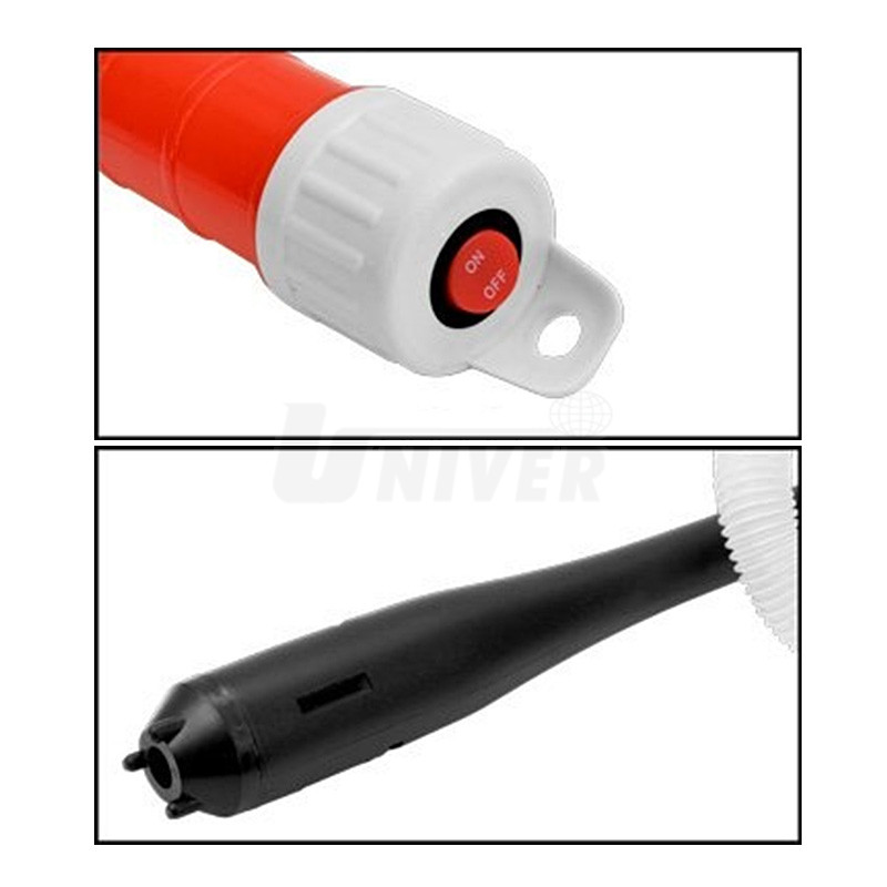 Univerzální ruční plastové čerpadlo pro čerpání motorové nafty, petroleje, lehkých olejů, vína, vody apod. z nádržek do hloubky 330 mm. Čerpadlo má průhlednou výdejní pružnou hadici a pevnou sací trubku. Pro napájení tohoto elektročerpadla slouží 2 monočlánky 1,5 V velikosti D. Velmi snadná obsluha, pohodlné a rychlé čerpání kapalin z kanystru / nádrže.Parametry: