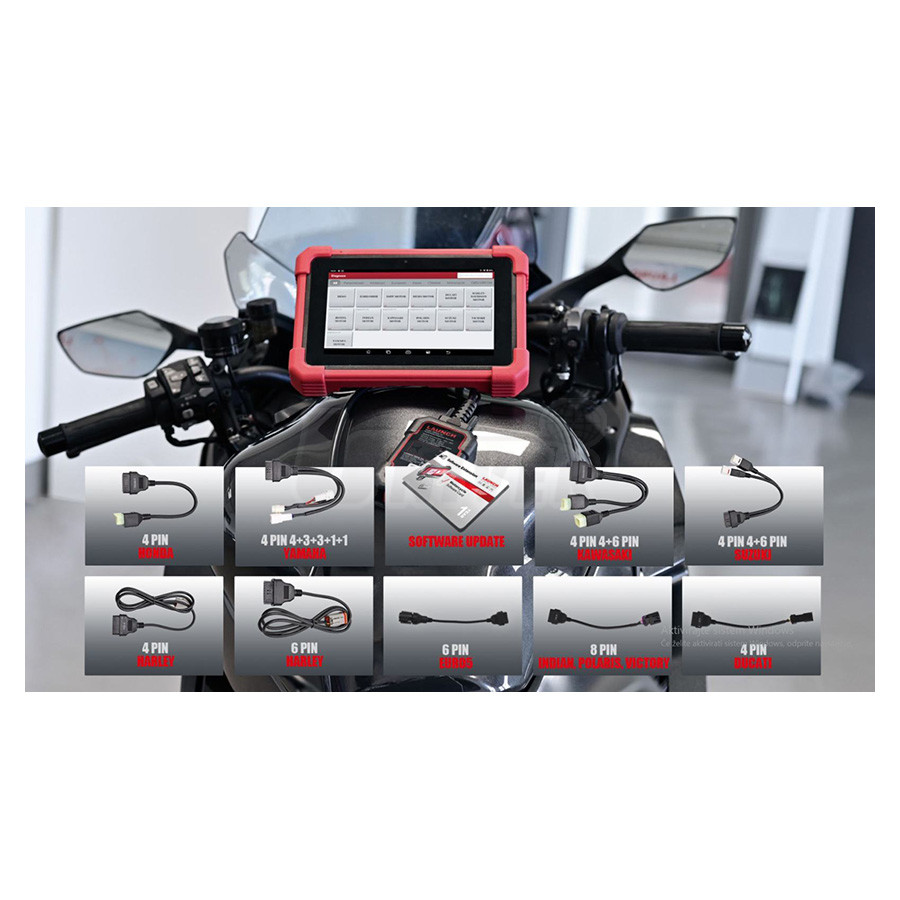 Systém pro diagnostiku motocyklů, skútrů, mopedů, čtyřkolek, sněžných a vodních skútrů mnoha významných výrobců / značek.- podporuje nejdůležitější diagnostické funkce, jako jsou čtení a mazání chybových kódů s definicemi, čtení datových toků (Data Stream / aktuální parametry v reálném čase z různých snímačů), testy akčních členů (např. on/off relé, vstřikovače, solenoidy atd.), identifikace řídící jednotky, automatické rozpoznání VIN, aktivace komponentů, Freeze Frame Data (snímek hodnot kritických parametrů v okamžiku záznamu chybových kódů)