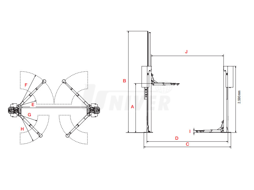 | Průjezdná šířka zvedáku (D) | 2590 mm |