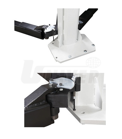 Dvousloupový elektromechanický zvedák (5500 kg) v tzv. bezprahovém provedení pro zvedání i malých automobilů (např. smart) a transportérů s dlouhým rozvorem.- extrémně dlouhá nosná ramena (4-dílná) umožňují zvedání vozidel na výrobcem určených místech