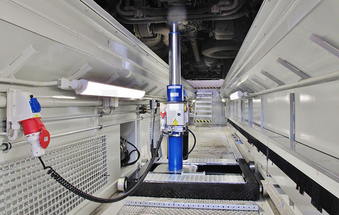 Elektrohydraulické jámové zvedáky s pojezdem po dně montážní jámy, nosností 14 t a 20 t a se zdvihem 1200 mm.- používají se především v opravnách s požadavkem na větší počet zvedaných vozů v průběhu pracovní směny