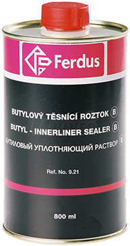 Roztok B je vyroben z butylového kaučuku, který nepropouští vzduch. Roztok slouží k utěsňování husticího vzduchu v bezdušových pneumatikách v případech:1. Při opravě poškozené butylové těsnicí vrstvy na vnitřní straně pláště při aplikaci opravných nýtů ON a opravných vložek US, UR, OR, KR, KD a OD. Roztok se nanáší štětcem ve středně silné vrstvě na obroušenou plochu a na modré okraje opravného materiálu.
