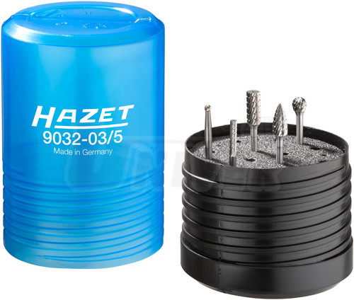 5 tvrdokovových frézovacích kolíků s frézami válcového, kuželového a kulového tvaru s dříky Ø 3 mm pro univerzální použití v kovoobrábění téměř všech materiálů