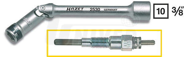 Nástrčná hlavice 3/8" na žhavicí svíčky 10 mm s kloubem a prodloužením s kulovým sevřením pro bezpečné uchycení svíčky umožňuje nastrčení na žhavicí svíčky 10 mm např. vznětových motorů vozů Volkswagen/Audi TDi, Mercedes-Benz CDI, smart atd. Hlavice je vyrobena z chrom-vanadia, povrch pochromovaný. Délka 140 mm.
