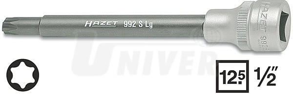 Zástrčné hlavice 1/2" v obzvláště dlouhém provedení jsou vyrobeny ze speciální oceli. Používají se při montáži/demontáži šroubů hlav válců motorů Ford (HAZET 992 S Lg- T 55) nebo pro montáž/demontáž převodovek VW Passat Ty 02 A (1,6/1,8/2,0 l).992SLG-T45 - celková délka 138 mm, průměr hlavice 23 mm