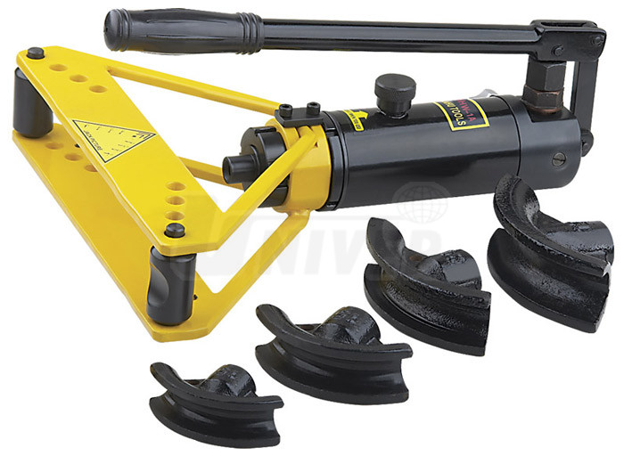 Přenosná hydraulická ohýbačka ocelových trubek a trubek z barevných kovů o průměru 3/8", 1/2", 3/4" a 1" se vyznačuje tuhou konstrukcí, ohýbací silou 6 t a úhlem ohybu až 90°.- pro ohýbání trubek z běžné oceli, nerezových trubek, trubek z barevných kovů apod.