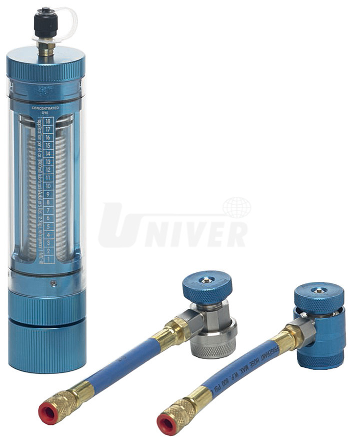 Praktický vstřikovač pro manuální doplňování oleje nebo aditiv do klimatizací vozidel včetně hadice a rychlospojky.- použití pro různá chladiva (i R1234yf) a oleje