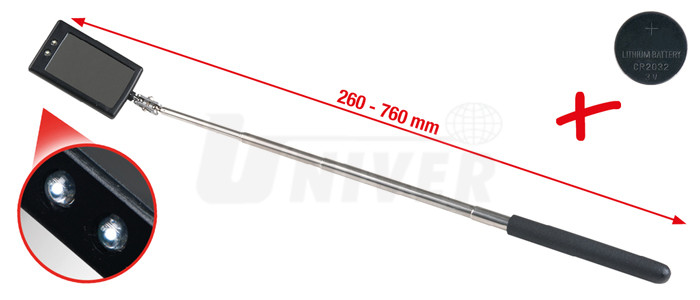 Teleskopické inspekční zrcátko s LED osvětlením a s dvojitým kloubem ke kontrole nepřístupných míst.- praktické zrcátko s výsuvným kovovým držákem (260 – 760 mm)