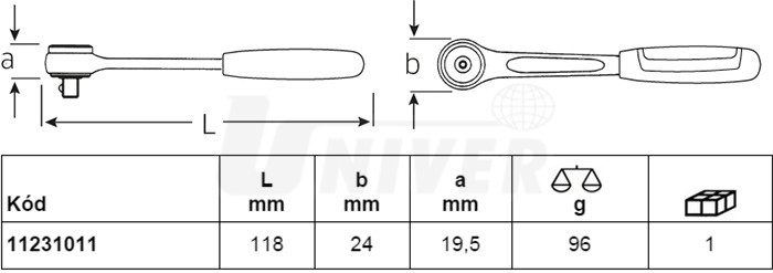 1/4", 60 zubů, pracovní úhel jen 6°, vynikající pro práci ve stísněném prostoru.