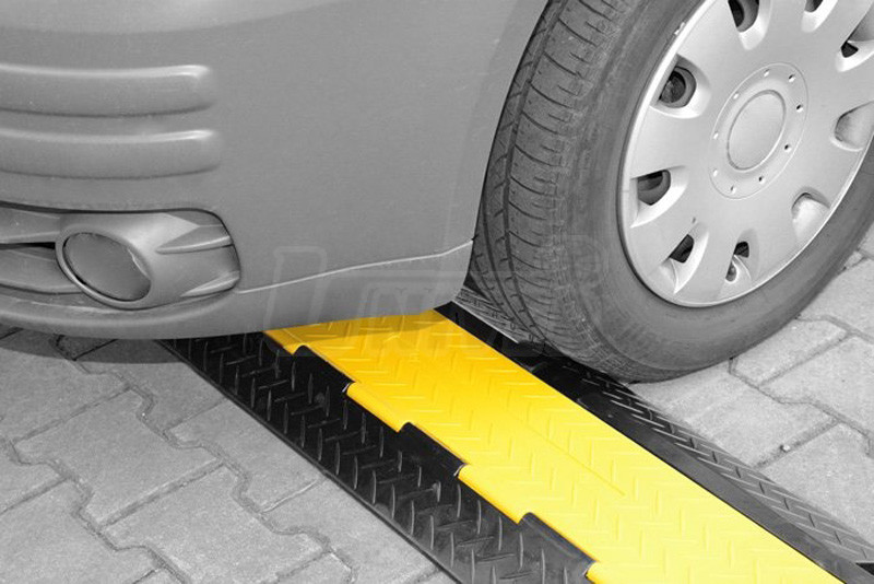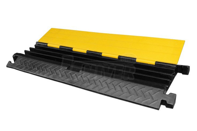 Pryžový kabelový přejezd se 3 kanálky a víkem slouží k ochraně kabelů, hadic, trubek atd., které jsou položené přes vozovku, komunikace pro chodce, chodníky, vnitřní komunikace v objektech apod.- kabelový přejezd pro ochranu na zpevněném povrchu položených kabelů, hadic, trubek atd.