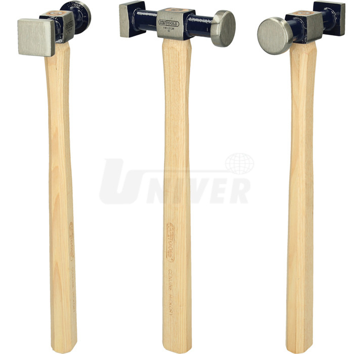 Standardní karosářské vyklepávací kladivo délky 325 mm a hmotnosti 390 g se čtvercovou a kulatou stranou hlavy.- standardní vyklepávací karosářské kladivo se čtvercovou a kulatou hlavou
