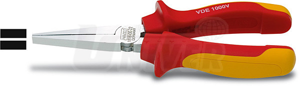 Kleště s plochými čelistmi pro elektrikáře jsou vyrobeny z vysoce kvalitní oceli. Mají speciální dvoukomponentní ergonomické rukojeti, což umožňuje vysoký přenos síly na čelisti. Samozřejmostí je perfektně vyrobený kloub s velmi úzkou tolerancí rozměru otvoru pro čep. Povrch kleští - leštěný chrom. Délka 160 mm. Kleště jsou zkoušeny při napětí 10 000 V. Umožňují bezpečnou práci až do napětí 1000 V (EN/IEC 60900:2004).