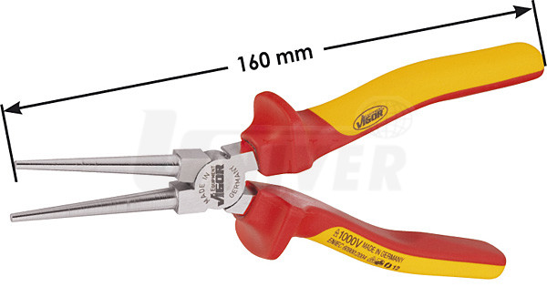 Kleště s kulatými čelistmi pro elektrikáře z vysoce kvalitní speciální oceli. Mají speciální dvou-komponentní ergonomické rukojeti, což umožňuje vysoký přenos síly na čelisti. Samozřejmostí je perfektně vyrobený kloub s velmi úzkou tolerancí rozměru otvoru pro čep. Povrch kleští - leštěný chrom. Délka 160 mm. Kleště jsou zkoušeny při napětí 10 000 V. Umožňují bezpečnou práci až do napětí 1000 V (EN/IEC 60900:2004).Objednávka zboží