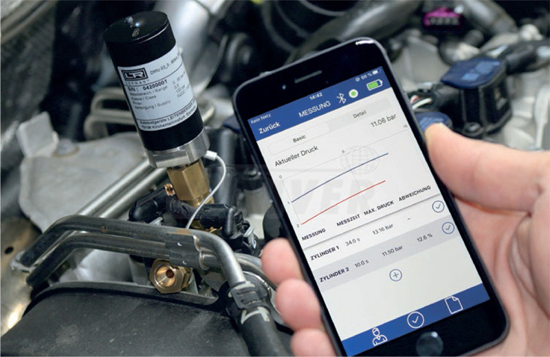 Kompresiometr s Bluetooth přenosem dat na koncové zařízení (chytrý telefon, tablet) pro měření kompresních tlaků ve válcích benzinových i dieselových motorů.- naměřená data lze snadno analyzovat v aplikaci LR Smart Tools (zdarma pro Android a iOS)