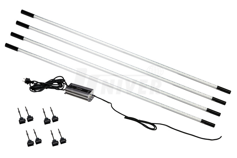 4 x 216 SMD LED 4 x 1400 lumen 4 x 1600 lux / 0,5 m 75° 24 V DC max. 4 x 20 W 8 m / 2x0,5 mm2 H03VV-F IP67 -10°C až +40°C 4 x Ø 25 x 1630 mm 4,5 kg |