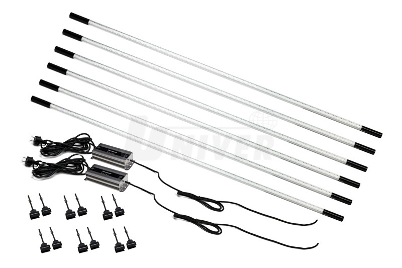 6 x 216 SMD LED 6 x 1400 lumen 6 x 1600 lux / 0,5 m 75° 24 V DC max. 6 x 20 W 8 m / 2x0,5 mm2 H03VV-F IP67 -10°C až +40°C 6 x Ø 25 x 1630 mm 8,0 kg |