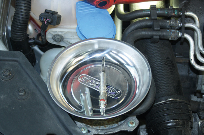 - slouží především pro ukládání / odkládání drobných součástek, jako jsou šroubky, matice, závlačky, drobné demontované díly apod., které jsou v misce přidržovány magnetickou silou
