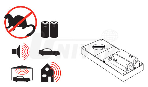 Účinný mobilní ultrazvukový přístroj pro ochranu proti kunám, myším a jiným hlodavcům.Tento pulzní odpuzovač / plašič je speciálně určen pro ochranu venkovních prostor. Přístroj využívá pro generování ultrazvukového signálu piezoměnič s velkým vyzařovacím úhlem, který je navíc v přístroji speciálně umístěný tak, aby se ultrazvukový signál z odpuzovače-plašiče šířil v úhlu asi 120 stupňů. Působnost ultrazvukového signálu je na vzdálenost větší než 6 metrů. Nejvyšší plochy pokrytí je možné dosáhnout při upevnění přístroje tak, aby přední strana přístroje (kde je umístěn piezoměnič) směrovala k zemi a přístroj byl upevněn ve výšce cca 2m (např. strop garážového stání, nebo pergoly, ev. větev stromu apod.). Tak je možné obsáhnout plochu až 55 m2.