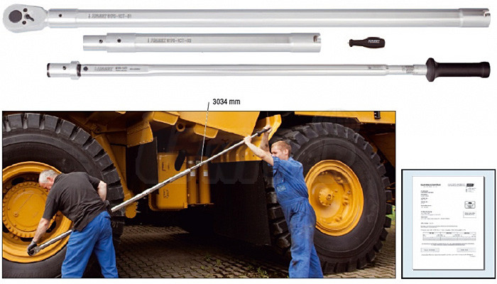 Kvalitní momentový klíč pro obzvláště velké utahovací momenty v rozsahu od 800 Nm do 2000 Nm.Zaručuje přesnost ± 4 % z rozsahu stupnice (ve směru použití). Používá se zejména při údržbě a opravách nákladních automobilů, autobusů, stavebních a zemědělských strojů, na větrných kolech, na lodích, v leteckém a v těžkém průmyslu apod. Rychlé utahování šroubů/matic kol je možné také jen s ráčnou a tyčí, kdy potom se tahování na předepsaný moment provádí jen s kompletním momentovým klíčem. K tomuto momentovém klíči se dodává taška pro přenášení klíče v rukou nebo na zádech.