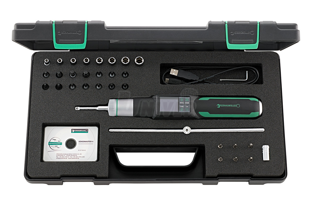 Elektromechanický momentový šroubovák s rozsahem 1 – 10 Nm se dodává jako 29-dílná sada v plastovém kufříku.- patentovaná mechanika s kulovým mechanismem reaguje při dosažení cílového točivého momentu slyšitelně a hmatatelně