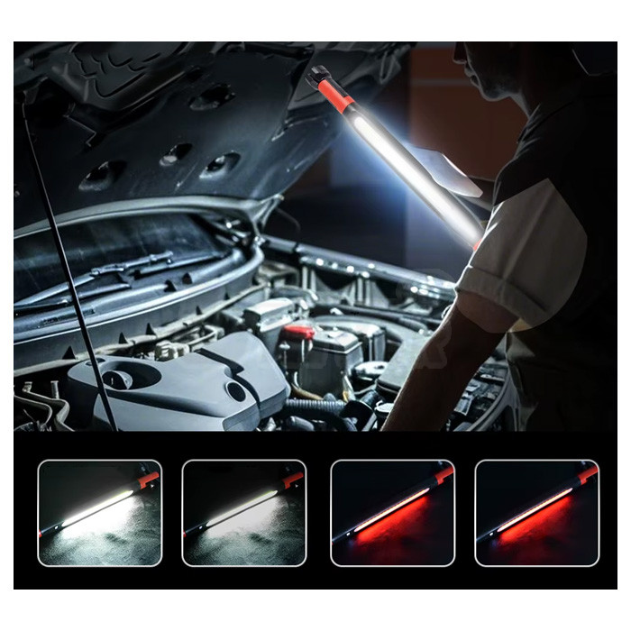 Dílenská montážní lampa trubicového provedení s postranními magnetickými otočnými držáky a uchycovacími háčky.- praktická dílenská montážní lampa trubicového provedení o délce 520 mm