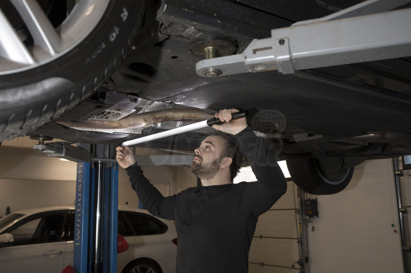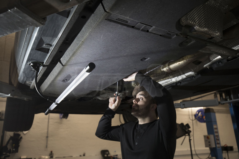 Montážní lampa se 48 SMD LED s teleskopickým držákem a SYSTEM DUAL pro kabelové připojení na síť a s nabíjecí Li-ion baterií.- lampa se do motorového prostoru instaluje pomocí teleskopického držáku (1,2 – 1,7 m) s polstrovanými háky
