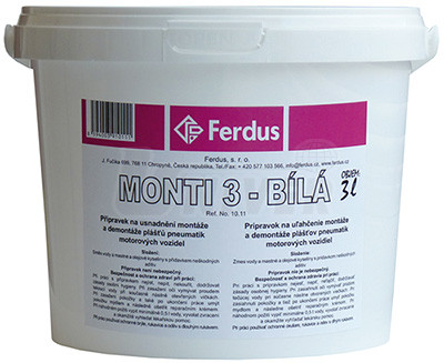 Bílá pasta má polotekutou konzistenci a po uschnutí nezanechává na pneumatice viditelné stopy. Ve srovnání s dřívějším přípravkem je mnohem klouzavější. Při montáži a demontáži se nanáší ve velmi tenké vrstvě, podobně jako u vosku. Spotřeba přípravku MONTI je proto velmi nízká a při práci nedochází k odstřikování pasty.Pasta MONTI je univerzální, používá se při montáži a demontáži pneumatik velo, motocyklů, osobních a lehkých nákladních vozidel.