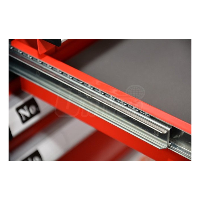 Víceúčelový montážní vozík tvoří horní odkládací deska a 7 zásuvek uložených v kuličkových ložiskách (5 nízkých 6 cm, 1 střední 12 cm a 1 vysoká 19 cm). Zásuvky (s popiskovými lištami) jsou opatřeny bezpečnostní západkou proti samovolnému otevření. Bezpečnostní uzamykací systém (2x klíč). Speciální plastová ochrana všech rohů proti poškození při případném nárazu. Vozík má 4 kolečka (2 pevná, 2 otočná s poziční brzdou). .Rozměry: 690 mm (770 mm vč. držadla) x 465 mm x 970 mm
