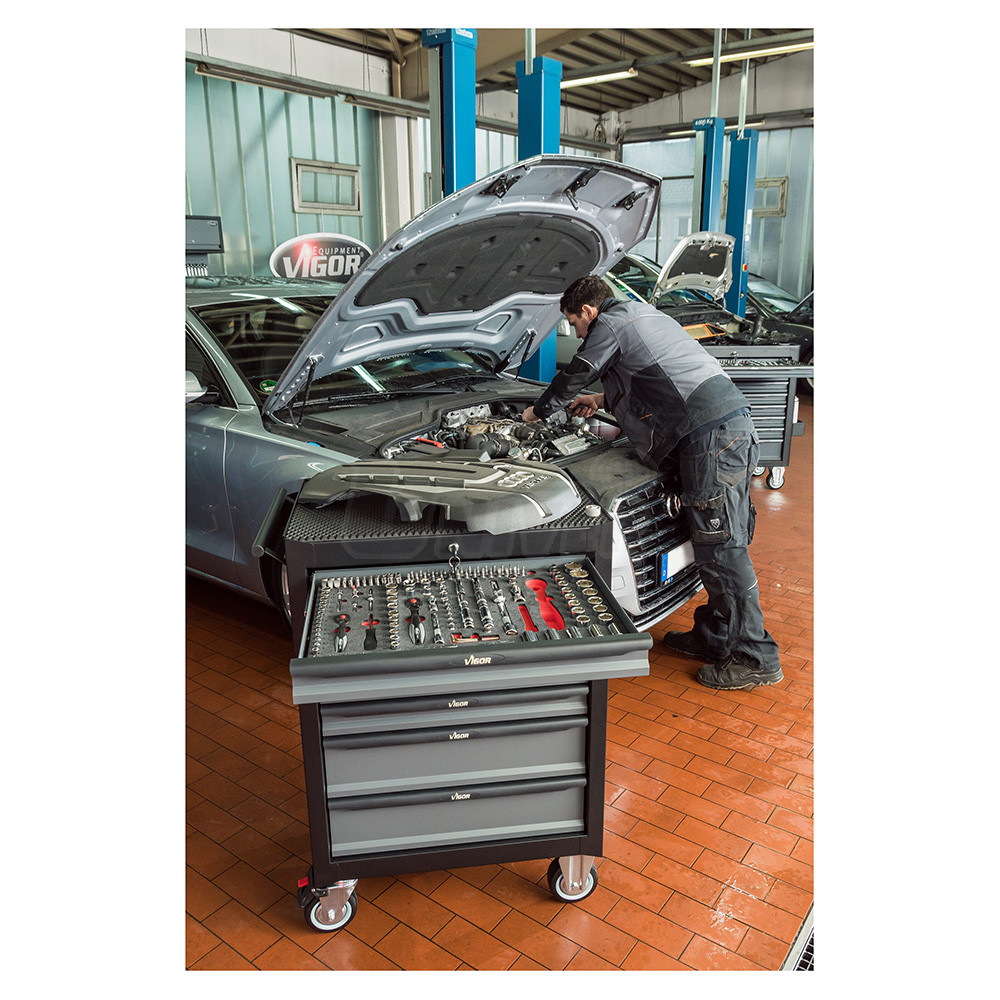 Montážní vozík s 228-dílnou sadou nářadí VIGOR V2712N