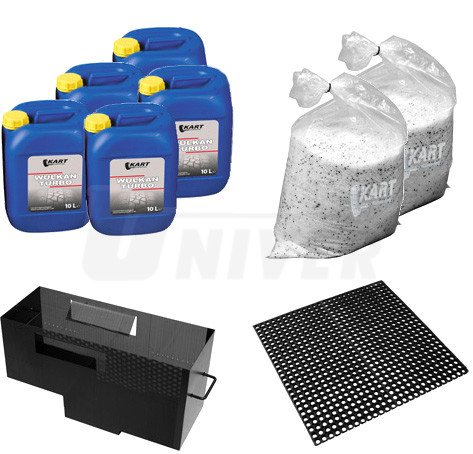 Mycí koncentrát WULKAN TURBO je nepěnivý, biologicky odbouratelný mycí prostředek navržený a vyrobený speciálně pro společnost KART. Používá se pro zvýšení kvality mytí. Mimo složek, které rozpouštějí různé typy nečistot a mastnoty, usazených na pneumatikách a ráfcích, obsahuje koncentrát také přípravek Calgonit, používaný do myček nádobí. Tento přípravek dodatečně vyleští ráfky. Použití mycího koncentrátu také pomáhá udržet myčku čistou, neboť brání ulpění nečistot na komorách stěn, čímž je proces čištění mytím mnohem snazší. Koncentrát se ředí v poměru 1:100. Když se během mycího procesu doplní voda, je důležité nezapomenout přidat odpovídající množství koncentrátu. Mycí koncentrát je optimální mycí prostředek doporučený společností KART. Pokud jsou dodrženy správné poměry,
