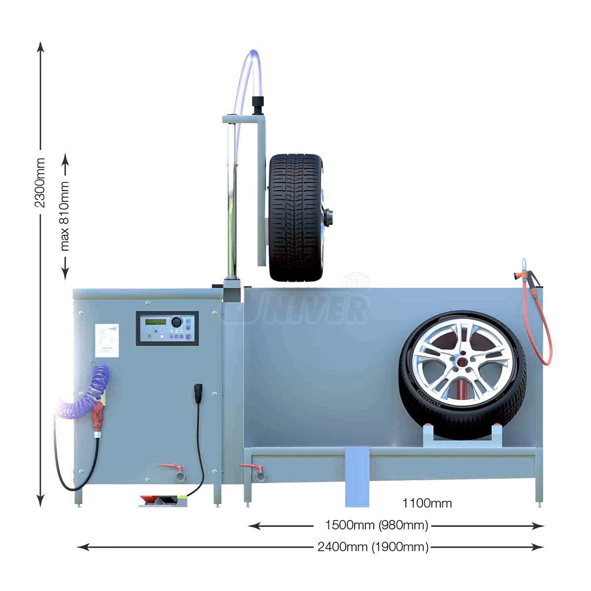 Mycí stroj s ultrazvukovou technologií zajišťuje dokonalý výsledek mytí bez agresivních chemikálií za cca 2 minuty.- špičkový mycí stroj kol osobních a lehkých užitkových automobilů do průměru 810 mm