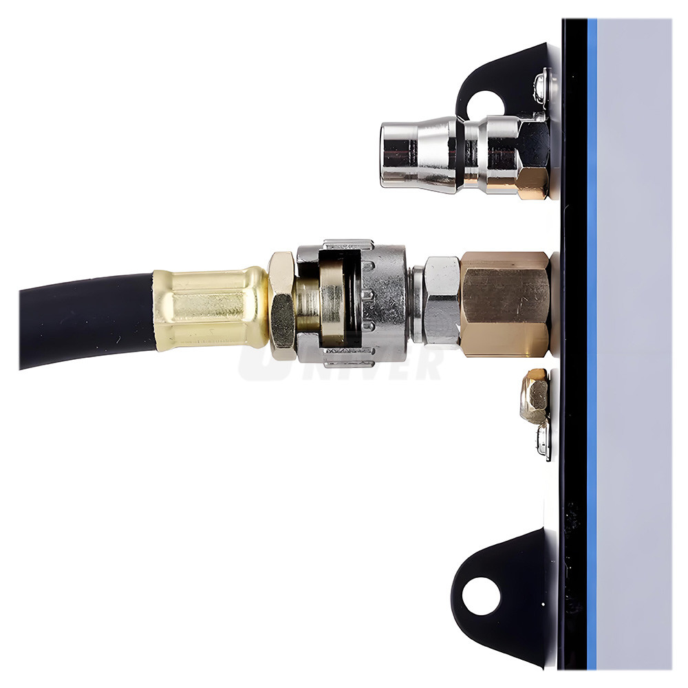 Digitální nástěnný pneuhustič (0,35 – 15 bar) s tlakovou vzduchovou hadicí dl. 10 m s koncovkou Euro Clip-on pro vnitřní i venkovní použití.- plně automatický provoz, snadné huštění i odtlakování pneumatik, po nastavení požadovaného tlaku a nasazení koncovky na ventil pneumatiky se automaticky spustí huštění, případně odtlakování pneumatiky, když je tlak v pneumatice menší než cca 0,7 bar je třeba stisknout pro zahájení huštění tlačítko ON