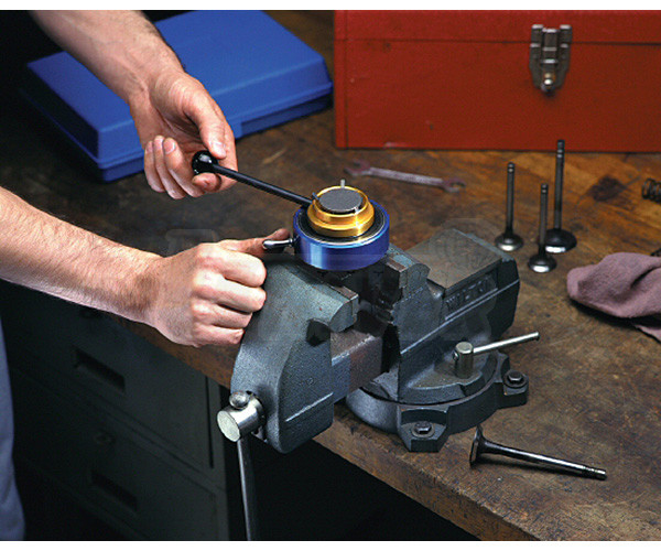 - součástí nástroje jsou univerzální upínací kleštiny pro dřík ventilu, použití vodících pouzder dříků ventilů zcela odpadá