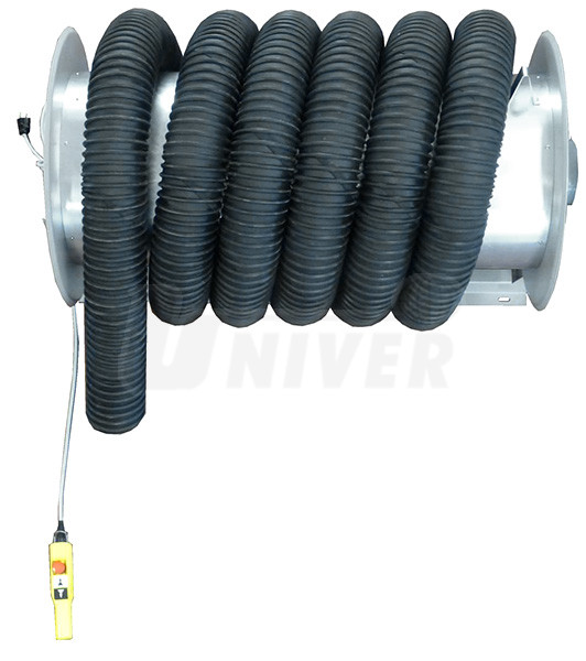 Automatické navijáky pro hadice odsávání výfukových plynů Ø 75 až 200 mm v délkách 7,5 až 15 m s elektrickým pohonem.- elektromotor zajišťuje jak odvíjení, tak i navíjení odsávací hadice