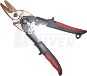 Vysoce kvalitní profesionální nůžky pro levé stříhání se používají hlavně pro jemné vystřihování malých poloměrů v okrajových částech plechu, pro vystřihování různých tvarů a křivek atd. Nůžky mají perfektní ergonomický tvar, pružné rukojeti se výborně drží, umožňují dlouhodobou pohodlnou práci. Hlavy nůžek nejsou nýtované, ale šroubované a tudíž vyměnitelné. Stříhací části jsou zhotoveny ze speciální, vysoce jakostní, ušlechtilé oceli. Mají břity s mikrozoubky proti sklouznutí.Nůžky jsou určeny pro stříhání ocelového plechu do síly 1,2 mm a vynikají dlouhou životností.