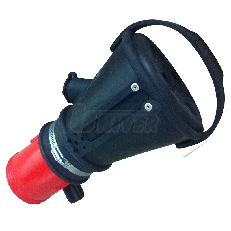 Trychtýře pro odsávání výfukových plynů kuželovitého tvaru mají odsávací otvor na výfuk Ø 160 mm, pryžové uzavírací víko, přírubu pro odsávací hadici Ø 75 až 125 mm a přídavnou rukojeť.- univerzální trychtýře / koncovky EURO PROFI kuželovitého tvaru s otvorem pro zasunutí sondy přístroje pro měření emisí a s přídavnou rukojetí pro lepší manipulaci