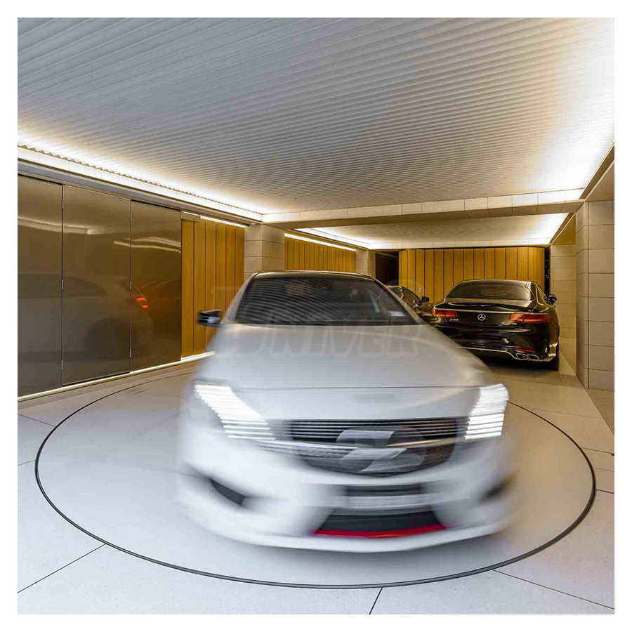 - otočná plošina může být v rovině s podlahou (nízká, jednoduchá základová úprava) nebo instalovaná na podlahu budovy (boční zakrytování s nájezdovým provedením)