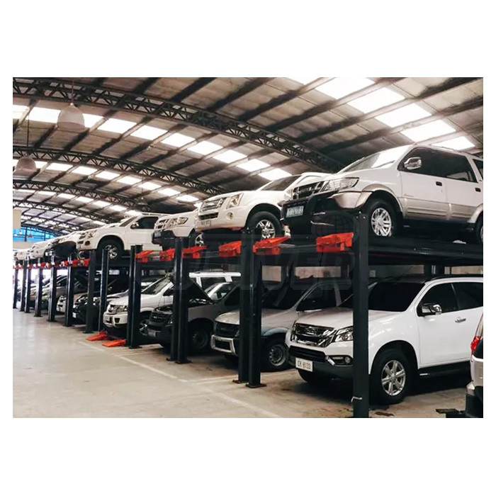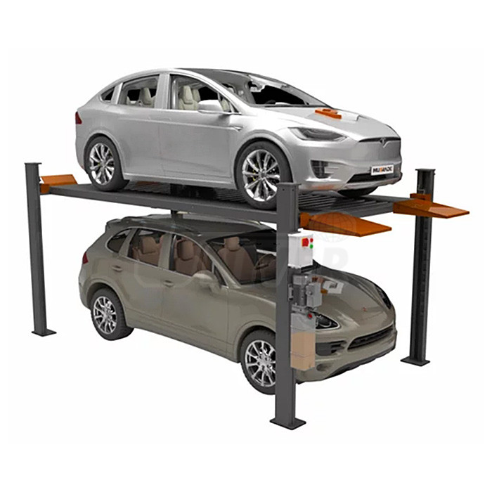 Komfortní čtyřsloupový hydraulický parkovací zvedák s nosností 3600 kg, robustní konstrukcí a extra širokými plošinami i pro velké automobily (např. SUV a terénní).- na stání osazené tímto zvedákem mohou současně parkovat 2 automobily, jeden na podlaze, druhý na plošinách zvedáku