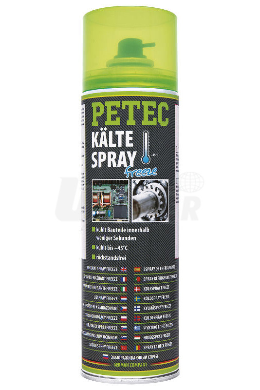 Přípravek pro ochlazování / zmrazování součástek ve spreji umožňuje ochlazení dílů během několika sekund a to až na teplotu - 45°C.- k rychlému ochlazení / zmrazení součástí, jako jsou např. ložiska, hřídele, pouzdra, lícovaná pera, články řetězů, karburátory, vstřikovací zařízení, transistory, odpory apod.