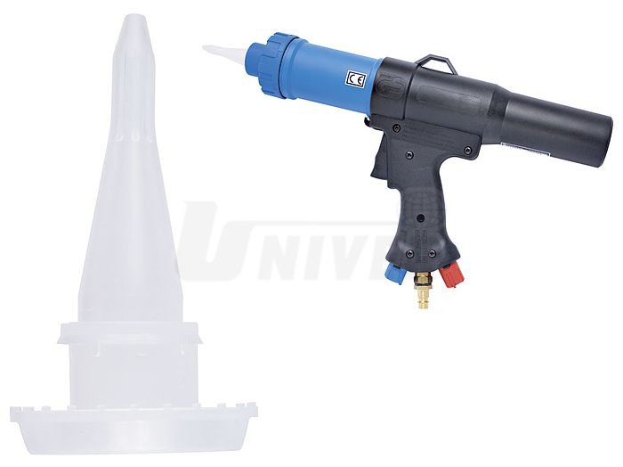Profesionální pneumatická pistole pro nanášení výtlačných jednokomponentních těsnicích hmot z kartuší.Má oddělené regulační ventily pro stříkací vzduch a posun vytlačovaného materiálu. Používá se s výhodou i pro znovuzhotovení originální struktury (např. s materiálem PETEC Multifunktionelle Nahtabdichtung apod.). Má ergonomický tvar držadla a pohodlně se s ní pracuje i v obtížně přístupných místech.