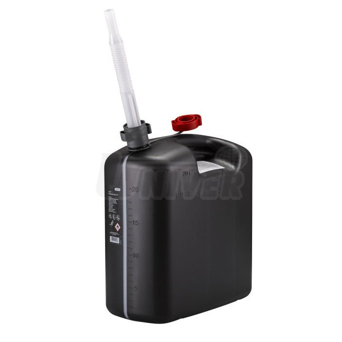 Kvalitní plastové kanystry 5 l / 10 l / 20 l s oddělitelným pružným výtokovým nástavcem (Ø 20 mm), integrovaným odvětráním a uzavíracím víčkem na fixačním pásku. Jsou odolné i proti silným nárazům. Výtokové nástavce jsou uloženy zasunuté v kanystrech. Ty se mohou používat na vodu, různé další kapaliny a to i potravinářského charakteru. Nejsou však použitelné pro pohonné hmoty (benzin, nafta apod.).Použití: průmysl, řemeslná výroba, dílny, domácnosti apod.