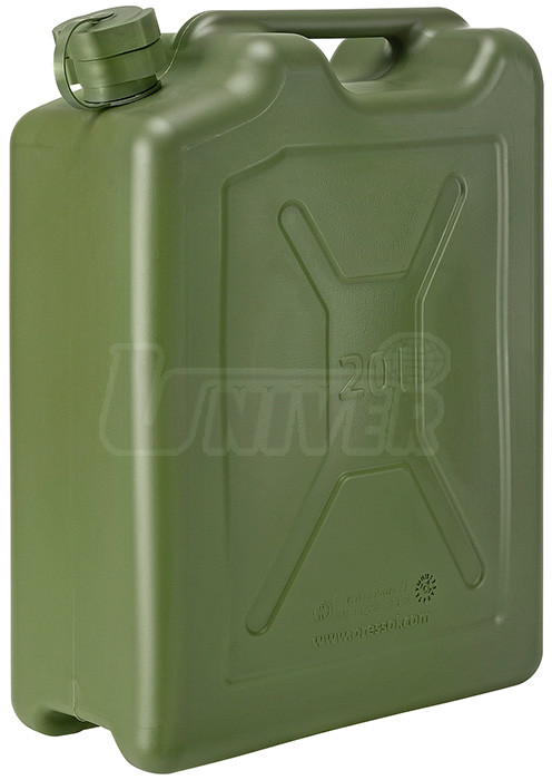 Kvalitní plastový kanystr 20 l s pružným výtokovým nástavcem umístěným v kanystru a integrovaným odvětráním má rozměry shodné s klasickým armádním kanystrem..- vhodný ke skladování a k bezpečné přepravě tekutých pohonných hmot / paliv (nafta, benzin, topné oleje apod.)