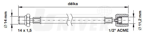 8885100011 - červená, délka 1800 mm, koncovky 14x1,5 vnější závit a 1/2" ACME vnitřní závit