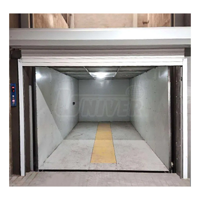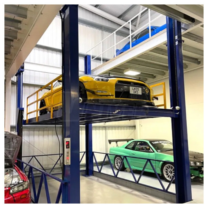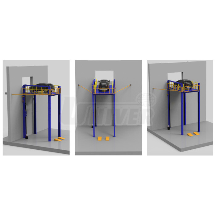 Plošinový čtyřsloupový hydraulický výtah pro automobily s nosností 4 t s výškou zdvihu 10 500 mm s výtahovou plošinou bez kabiny nebo s kabinou.- kvalitní hydraulický motor Lisheng (volitelně i značky ABB nebo Siemens)