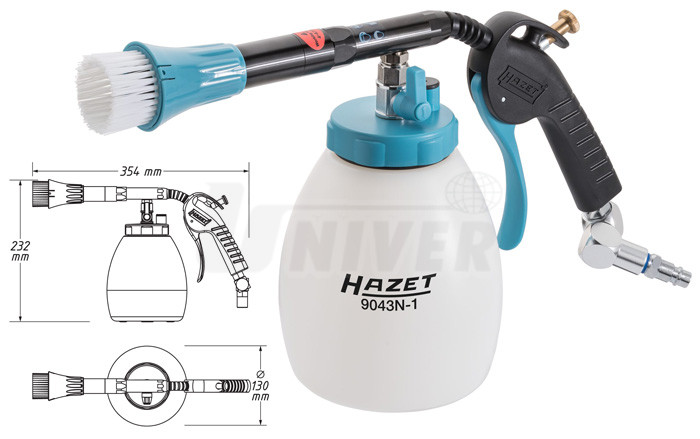 9043N-2 Sací nástavec pro rotační čisticí pistoli HAZET 9043N-1, používá se jako mokrý vysavač k vysávání nanesených čisticích prostředků a rovněž uvolněných nečistot v jednom pracovním cyklu, sací nástavec z plně průhledného plastu zabraňuje vniknutí čisticího prostředku do hloubky, fixace sacího nástavce k čisticí pistoli se provádí rýhovaným šroubem, šířka vyústění 69 mm.